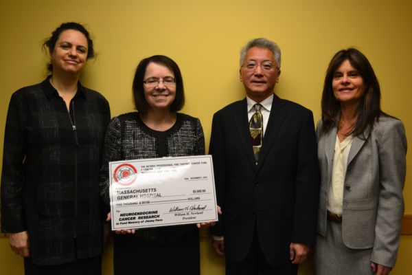 Our latest cancer research donation was made recently to Massachusetts General Hospital for their Neuroendocrine Cancer Research Program in fond Memory of Jimmy Pace. Pictured (from left to right)
